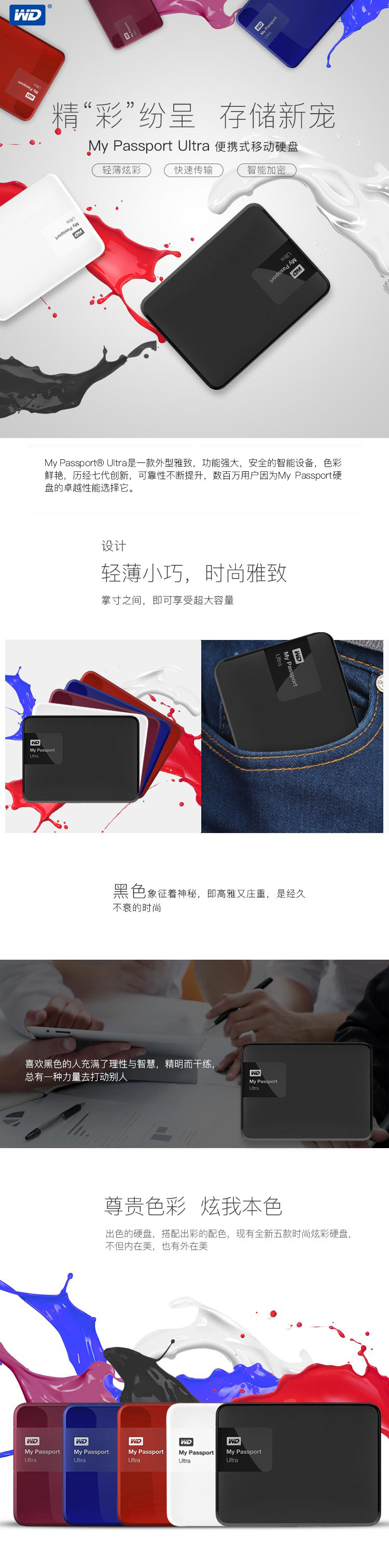 西部数据(WD) Elements 新元素系列 2.5英寸 USB3.0 移动硬盘 2TB(WDBU6Y0020BBK)