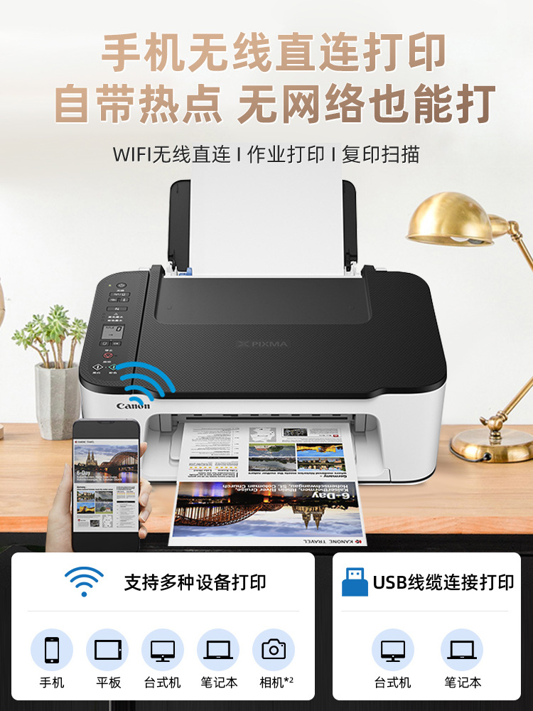 • 佳能TS3480打印机 家用手机无线彩色喷墨学生作业复印小型一体机