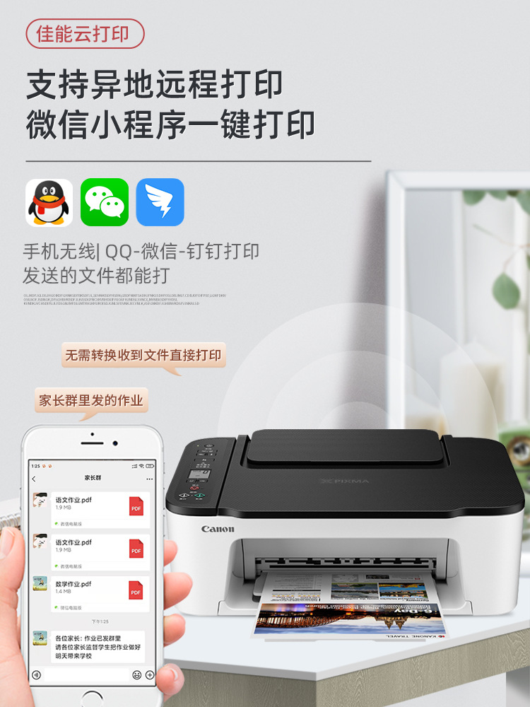 佳能TS3480打印机 家用手机无线彩色喷墨学生作业复印小型一体机