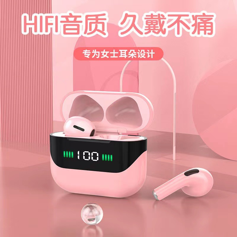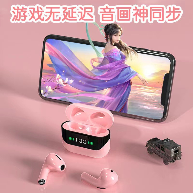 • 跨境入耳式真无线蓝牙耳机2022新款数显粉色立体音效智能通话降噪