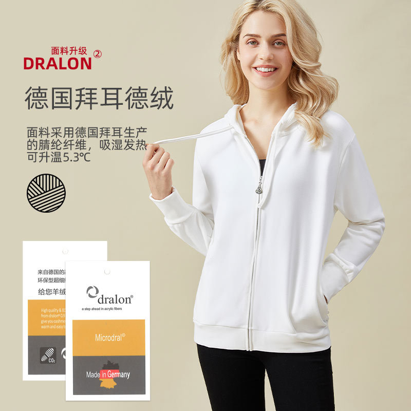 • 新款女士德绒打底衫玻尿酸开衫外套磨毛蓄热恒温连帽休闲卫 衣