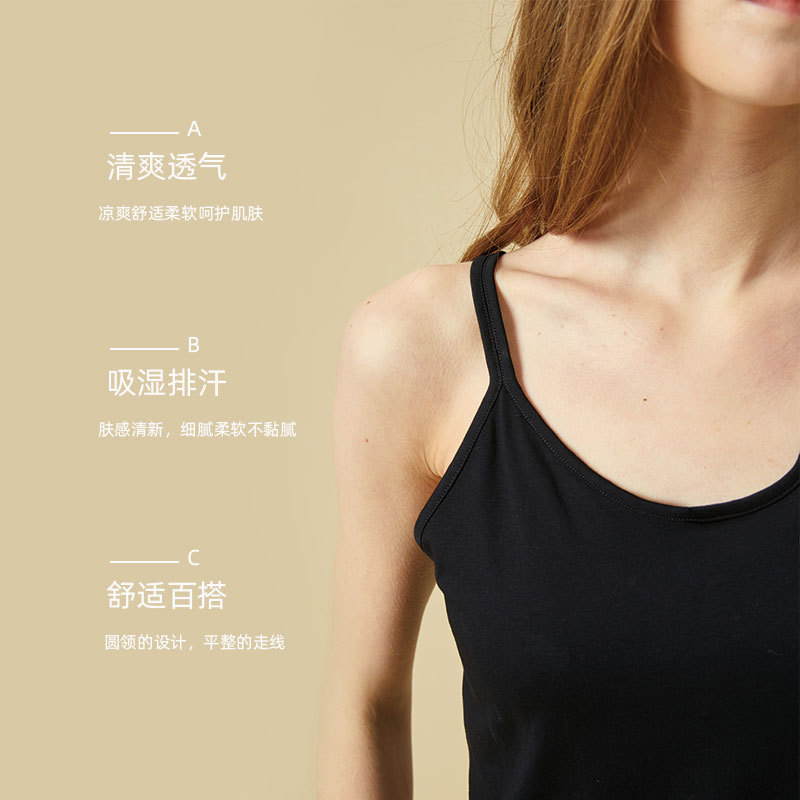 • 2023新款春夏百搭简约休闲女士椰油单面带胸垫一体式圆领吊带背心