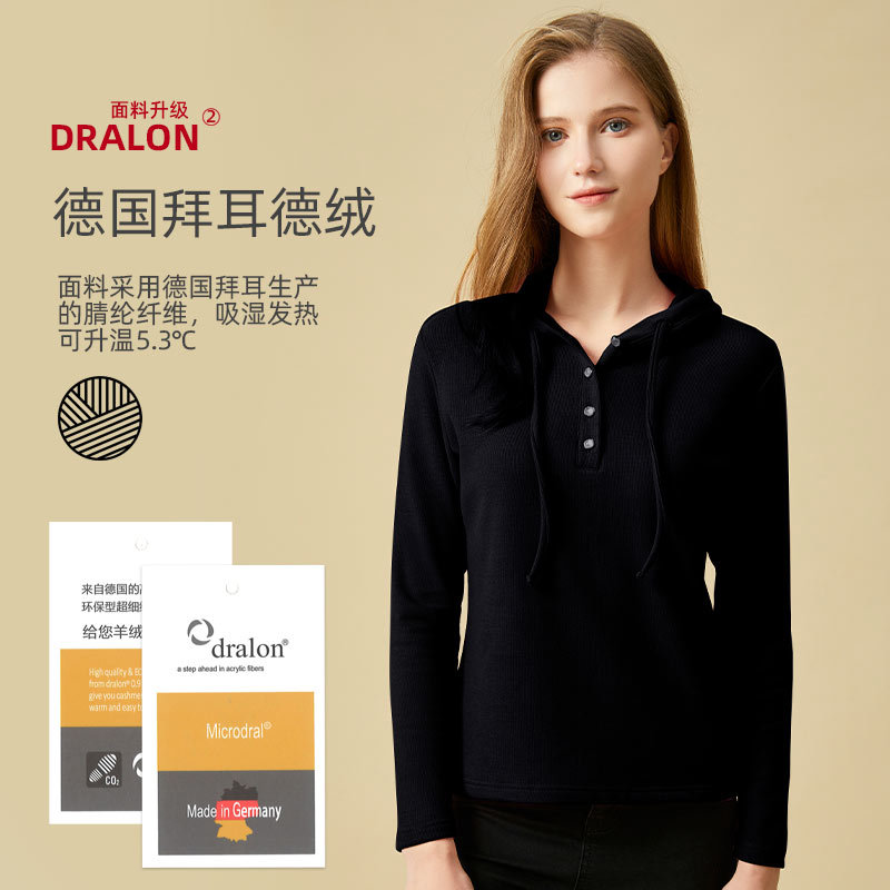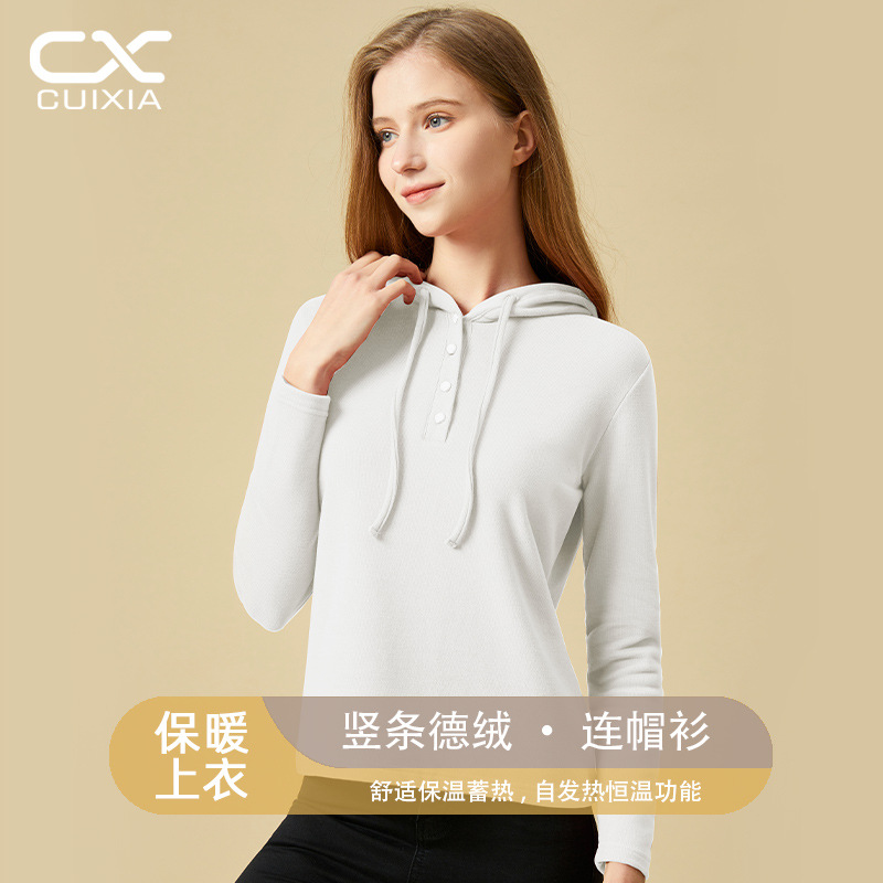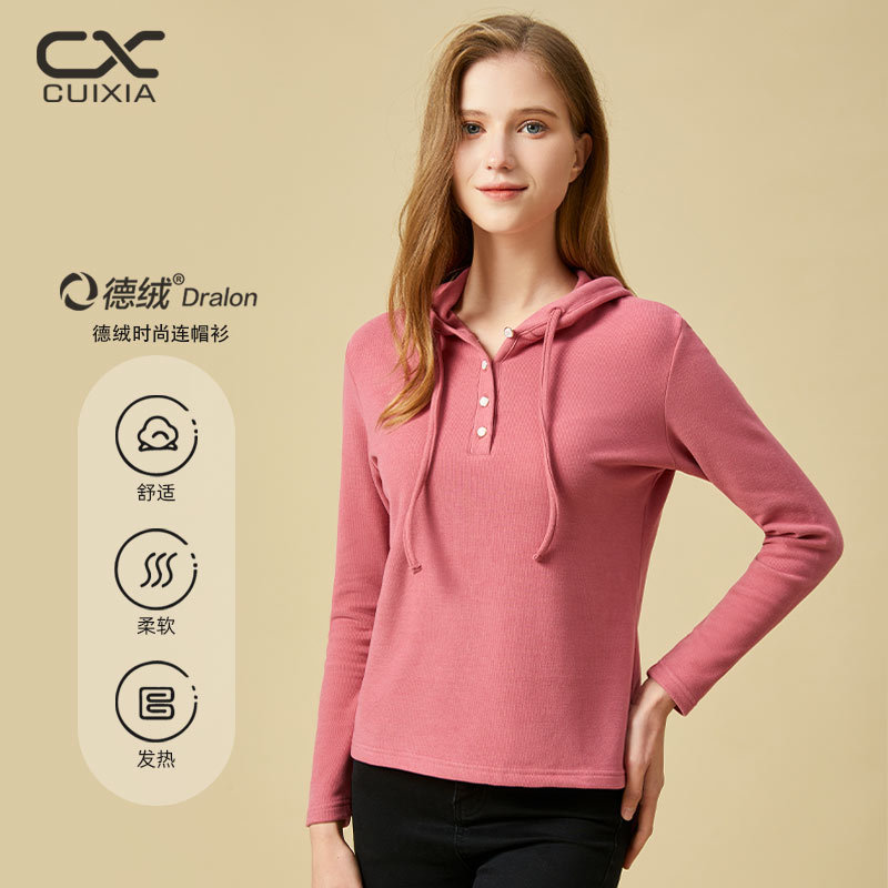 • 新款春夏女士德绒连帽衫纯色磨毛发热时尚打底休闲上衣