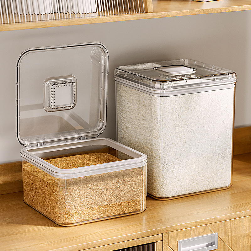 • 米桶家用厨房杂粮箱桌面米缸透明密封可翻盖简约大容量储米收纳盒