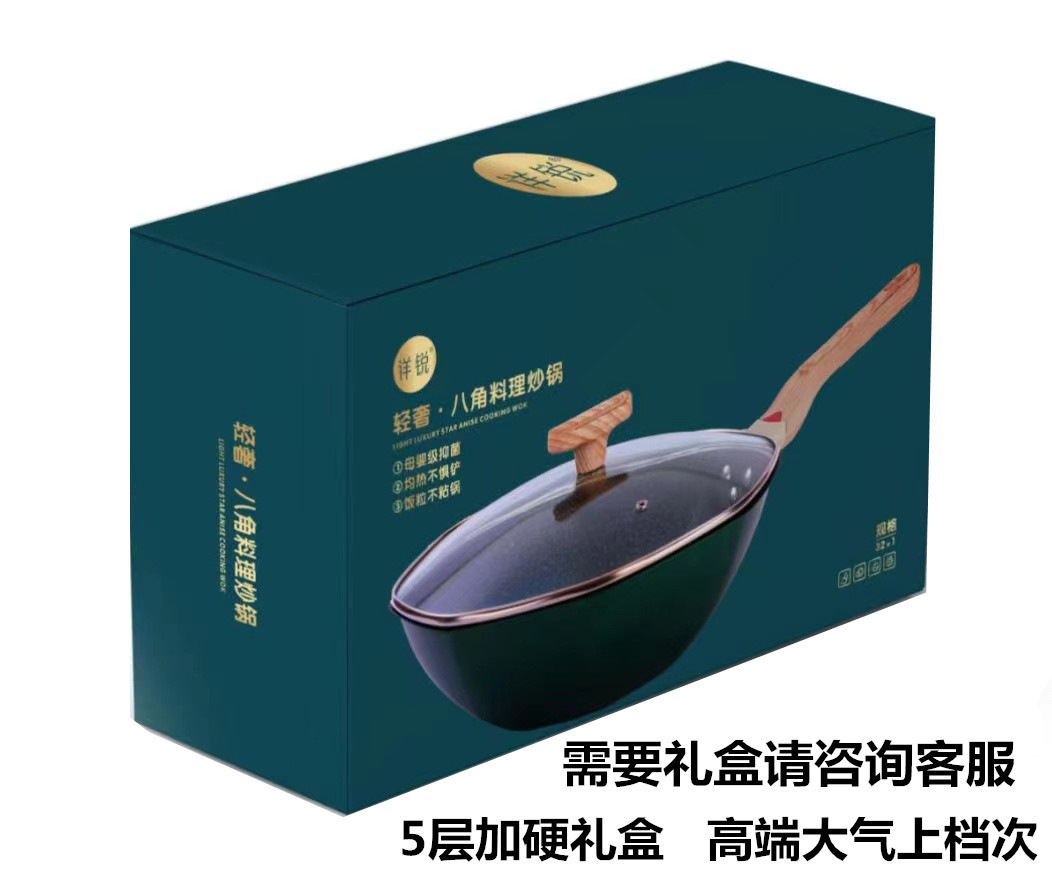 • 礼品炒锅麦饭石不粘炒锅家用炒菜八角锅电磁炉专用炒菜锅不沾锅