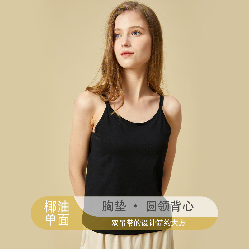 • 2023新款春夏百搭简约休闲女士椰油单面带胸垫一体式圆领吊带背心